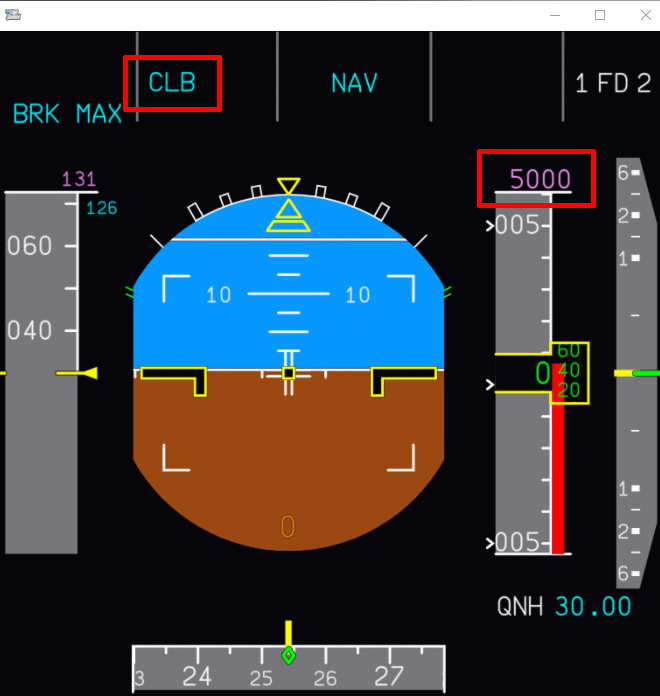 2. CLB will be armed in blue indicating further climb is expected as set in your FCU.