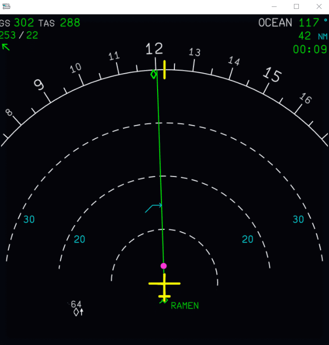 There are also a few pseudo waypoints indicated on the ND indicating different changes to the flight profile as the aircraft continues along the flight plan.