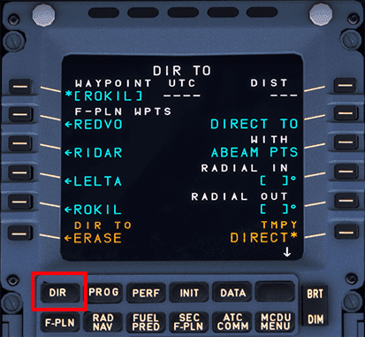 ATC regularly instructs us to go "direct to (waypoint) XYZ". Use the ECAM DIR page to select the waypoint from the flight plan's list of waypoints. In rare cases it is a waypoint not in the current flight plan, then you can enter a new waypoint in the MCDU and put it into the upper left entry field. Select DIRECT* on the right-bottom to execute the change.