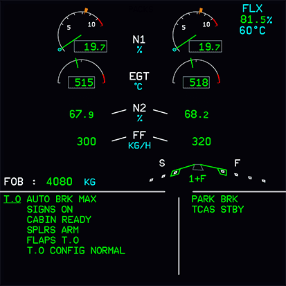 • Press T.O. Config button below the ECAM to check takeoff configuration