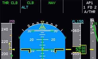 After reaching thrust reduction altitude, the PFD FMA now shows a flashing LVR CLB message to instruct the pilot to move thrust levers to the CL detent.