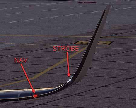 There are dual navigation lights on each wing tip and in the APU tail cone.
